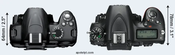 | 8. | Nikon D600 | 141 mm | 113 mm | 82 mm | 850 g | 900 | Y | Sep 2012 | US$ 2 099 | ebay.com | |