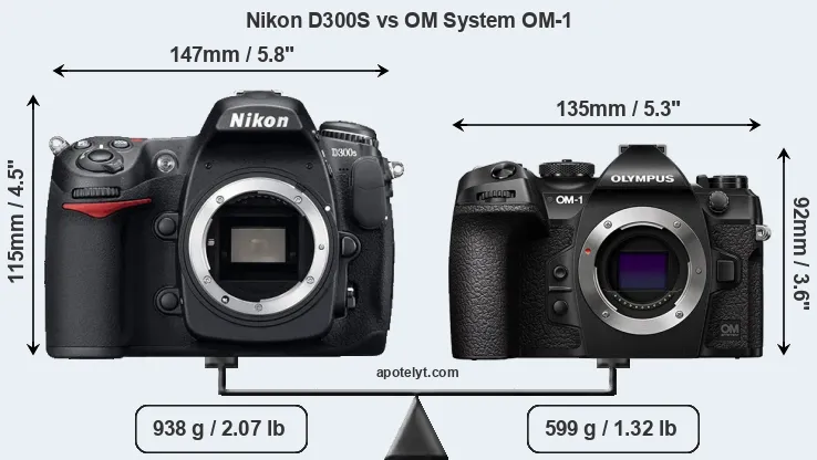 Size Nikon D300S vs OM System OM-1