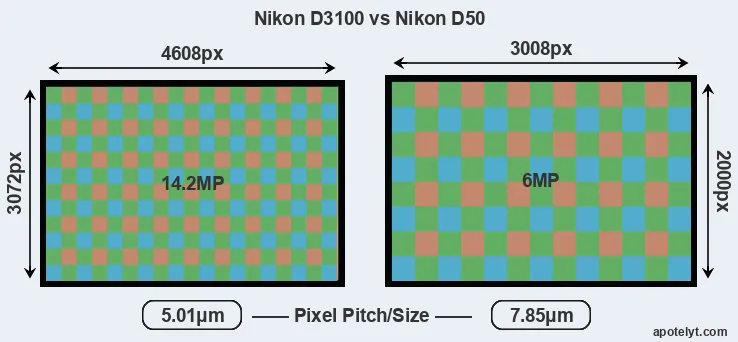 | Sensor Specs | Nikon D3100 | Nikon D50 |