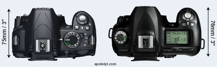 | 13. | Nikon D5000 | 127 mm | 104 mm | 80 mm | 590 g | 510 | n | Apr 2009 | US$ 749 | ebay.com | |