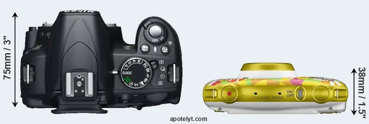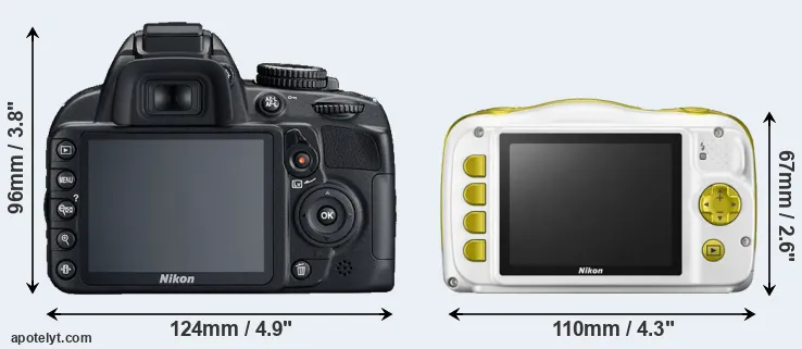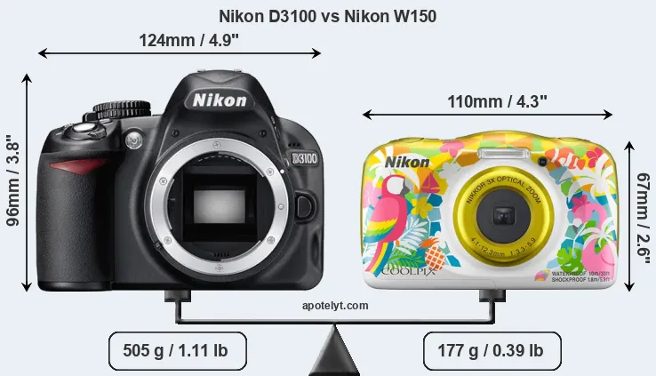 Size Nikon D3100 vs Nikon W150