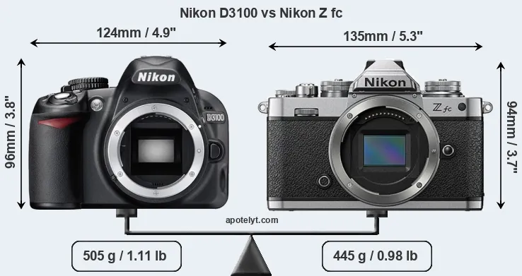 | Body Specs | Nikon D3100 | Nikon Z fc |