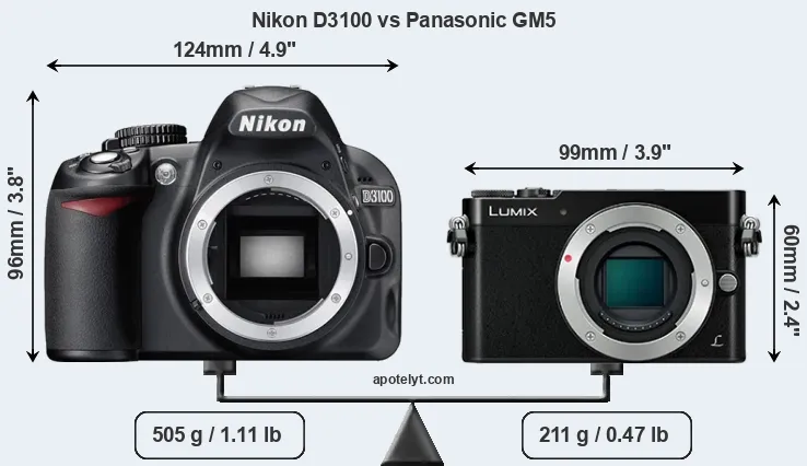 | Body Specs | Nikon D3100 | Panasonic GM5 |