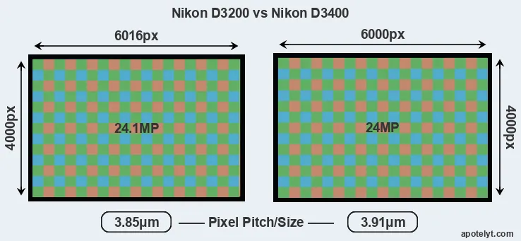 | Sensor Specs | Nikon D3200 | Nikon D3400 |