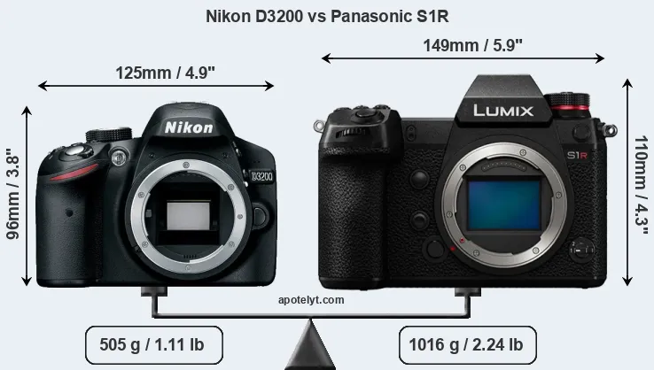 | Body Specs | Nikon D3200 | Panasonic S1R |