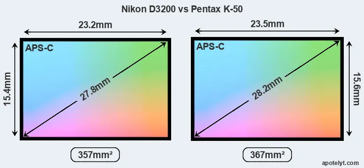 | Sensor Specs | Nikon D3200 | Pentax K-50 |