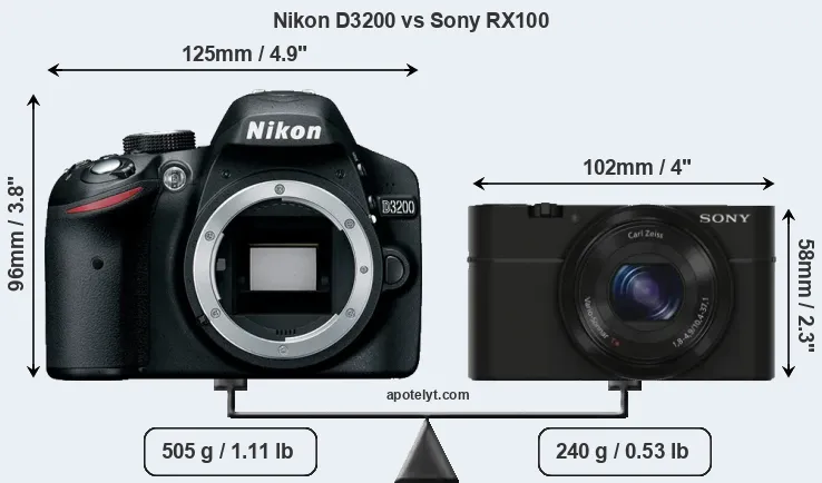 Size Nikon D3200 vs Sony RX100