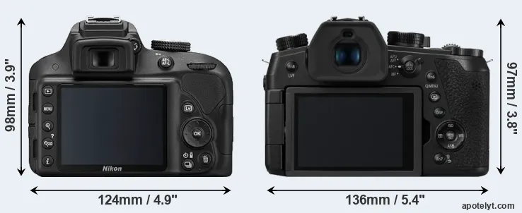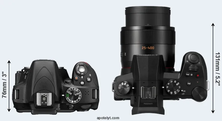 | Body Specs | Nikon D3300 | Panasonic FZ1000 II |