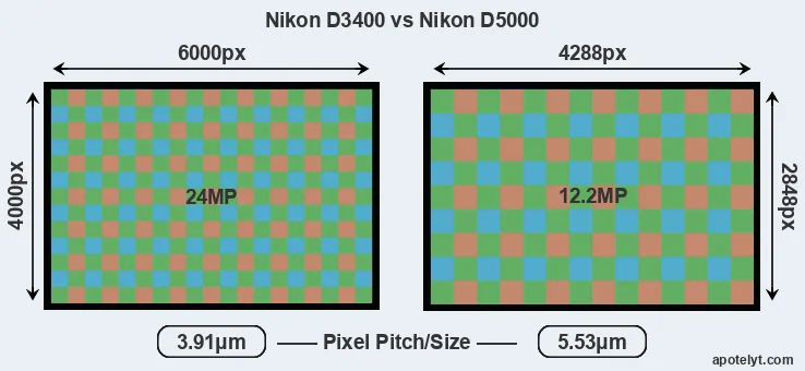 | Sensor Specs | Nikon D3400 | Nikon D5000 |