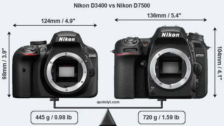 Size Nikon D3400 vs Nikon D7500