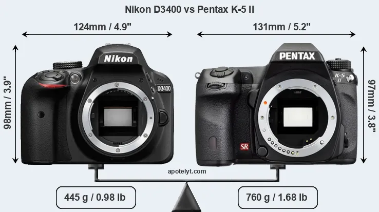 Specifications: Nikon D3400 vs Pentax K-5 II