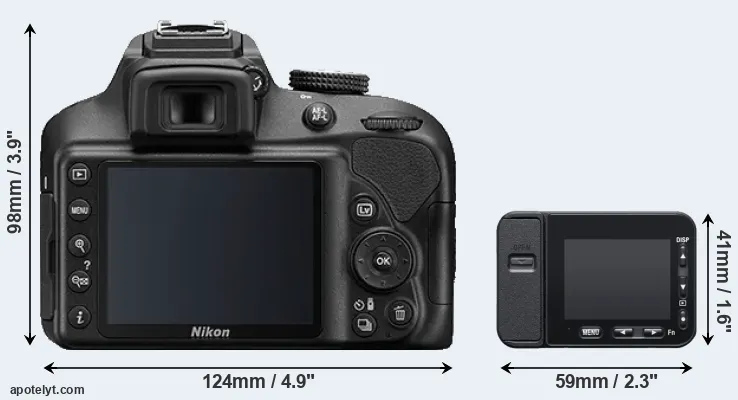 | 1. | Nikon D3400 | 124 mm | 98 mm | 76 mm | 445 g | 1200 | n | Aug 2016 | US$ 499 | ebay.com | |