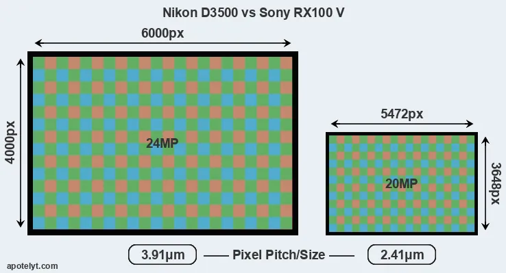 | Sensor Specs | Nikon D3500 | Sony RX100 V |