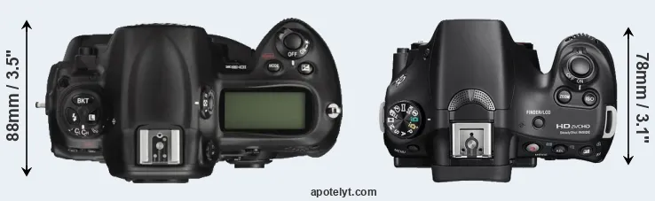 | 2. | Sony A58 | 129 mm | 95 mm | 78 mm | 492 g | 690 | n | Feb 2013 | US$ 599 | ebay.com | |