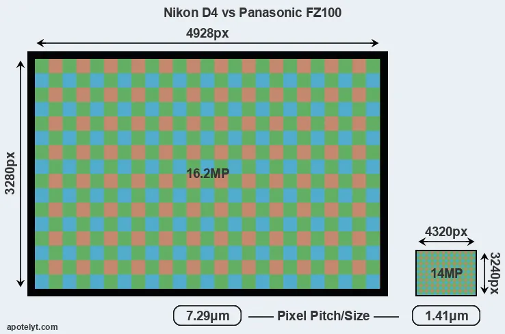 | Sensor Specs | Nikon D4 | Panasonic FZ100 |
