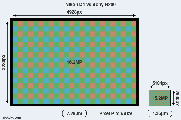 | Sensor Specs | Nikon D4 | Sony H200 |