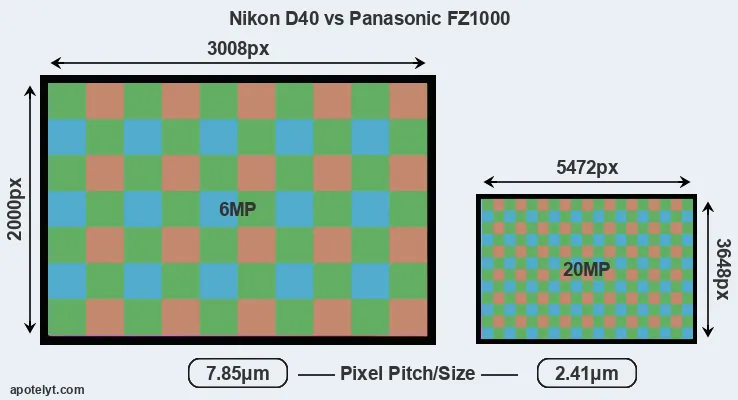 | Sensor Specs | Nikon D40 | Panasonic FZ1000 |