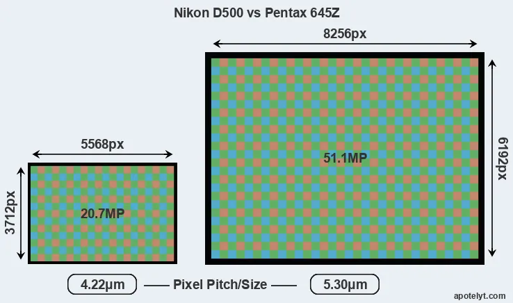 | Sensor Specs | Nikon D500 | Pentax 645Z |