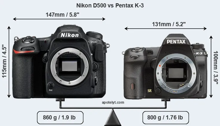 | Body Specs | Nikon D500 | Pentax K-3 |