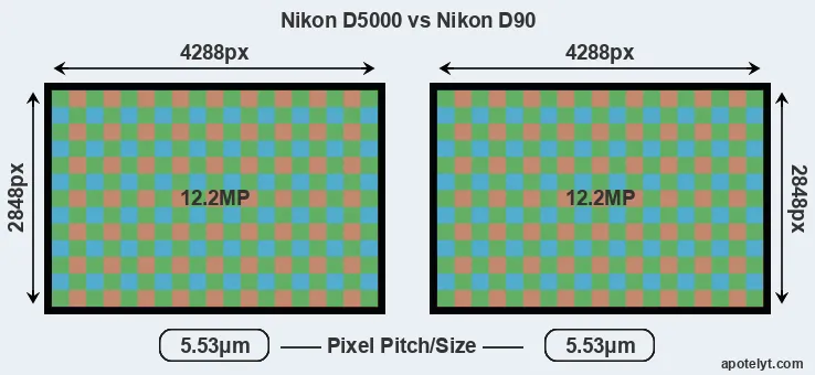 | Sensor Specs | Nikon D5000 | Nikon D90 |