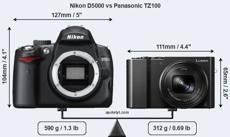 | Body Specs | Nikon D5000 | Panasonic TZ100 |
