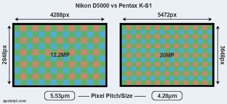 | Sensor Specs | Nikon D5000 | Pentax K-S1 |