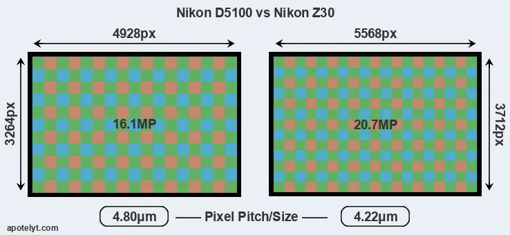 | Sensor Specs | Nikon D5100 | Nikon Z30 |