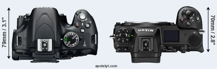 The side-by-side display below illustrates the physical size and weight of the Nikon D5100 and the Nikon Z7 II. The two cameras are presented according to their relative size. Three consecutive perspectives from the front, the top, and the back are available. All width, height and depth measures are rounded to the nearest millimeter.
