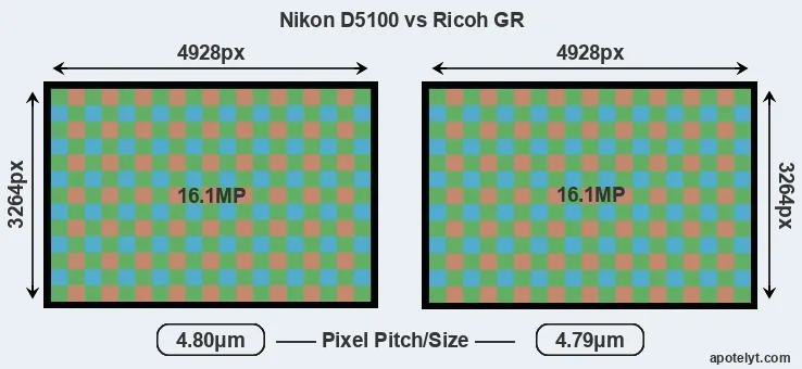 | Sensor Specs | Nikon D5100 | Ricoh GR |