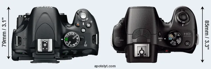 | 5. | Nikon D3200 | 125 mm | 96 mm | 77 mm | 505 g | 540 | n | Apr 2012 | US$ 599 | ebay.com | |