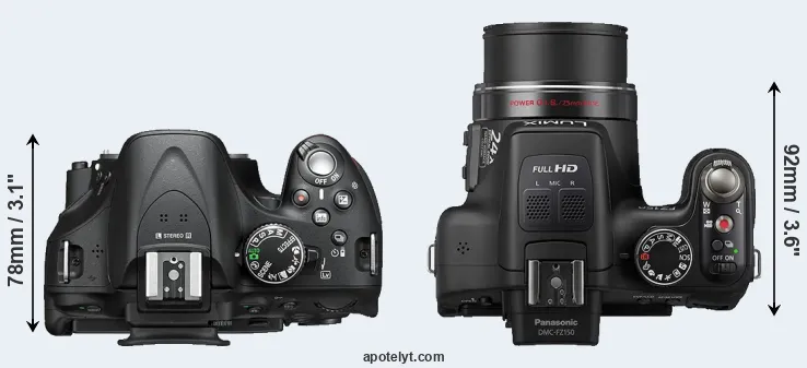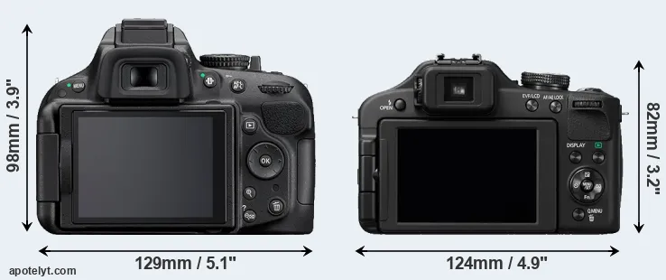 | Body Specs | Nikon D5200 | Panasonic FZ150 |