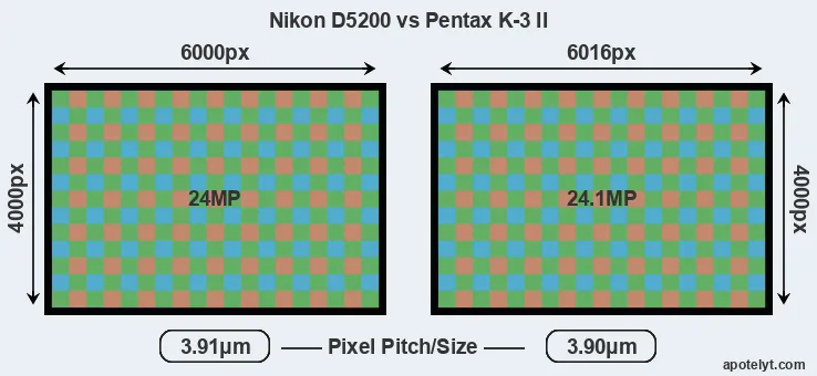 | Sensor Specs | Nikon D5200 | Pentax K-3 II |