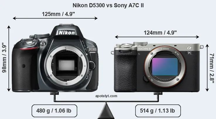 Size Nikon D5300 vs Sony A7C II