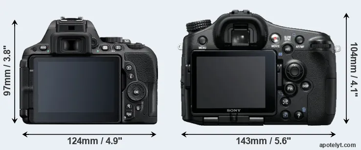 Going beyond this snapshot of core features and characteristics, what are the differences between the Nikon D5500 and the Sony Alpha SLT-A77? Which one should you buy? Read on to find out how these two cameras compare with respect to their body size, their imaging sensors, their shooting features, their input-output connections, and their reception by expert reviewers.