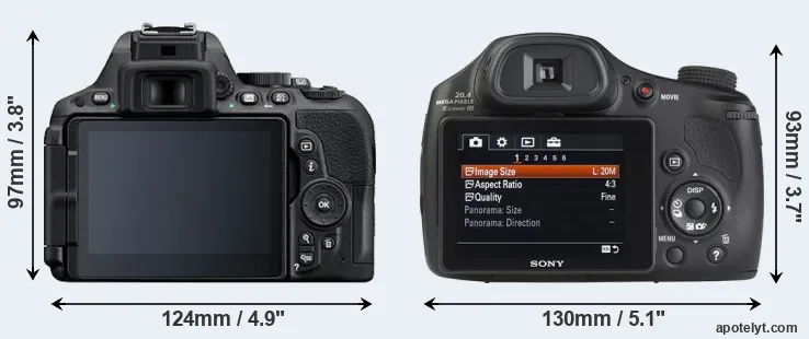 Going beyond this snapshot of core features and characteristics, what are the differences between the Nikon D5500 and the Sony Cyber-shot DSC-HX350? Which one should you buy? Read on to find out how these two cameras compare with respect to their body size, their imaging sensors, their shooting features, their input-output connections, and their reception by expert reviewers.