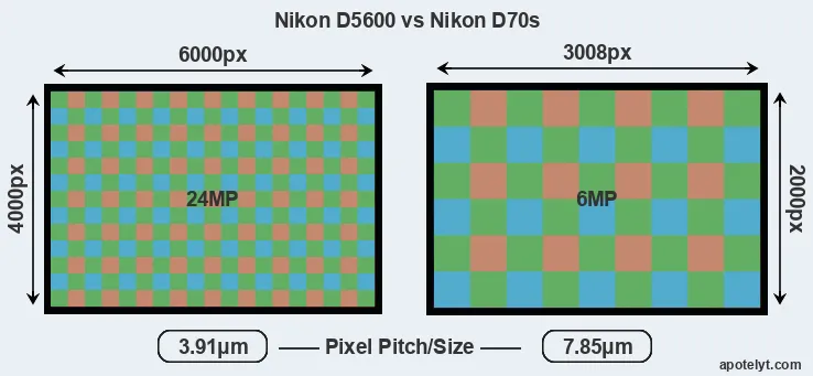 | Sensor Specs | Nikon D5600 | Nikon D70s |