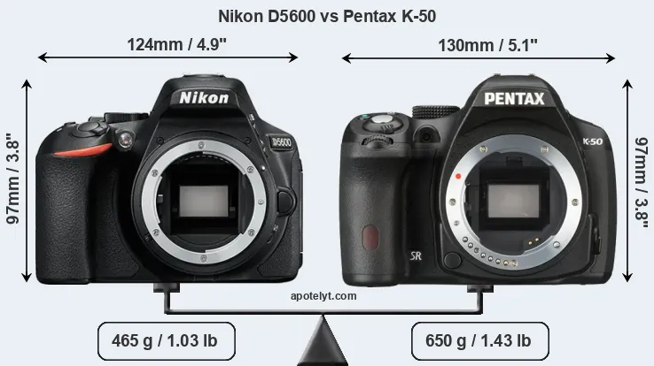 Size Nikon D5600 vs Pentax K-50