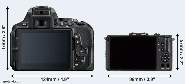 The Nikon D5600 and the Pentax Q are two digital cameras that were announced, respectively, in November 2016 and June 2011. The D5600 is a DSLR, while the Pentax Q is a mirrorless interchangeable lens camera. The cameras are based on an APS-C (D5600) and a 1/2.3-inch (Pentax Q) sensor. The Nikon has a resolution of 24 megapixels, whereas the Pentax provides 12 MP.