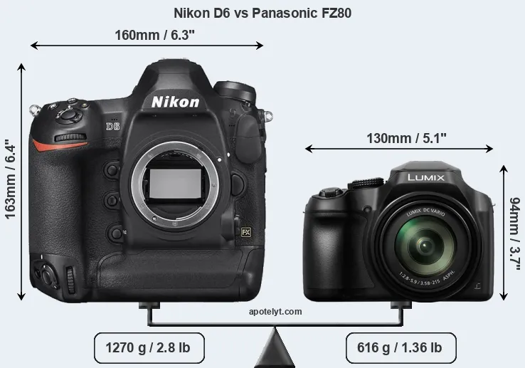 | Body Specs | Nikon D6 | Panasonic FZ80 |