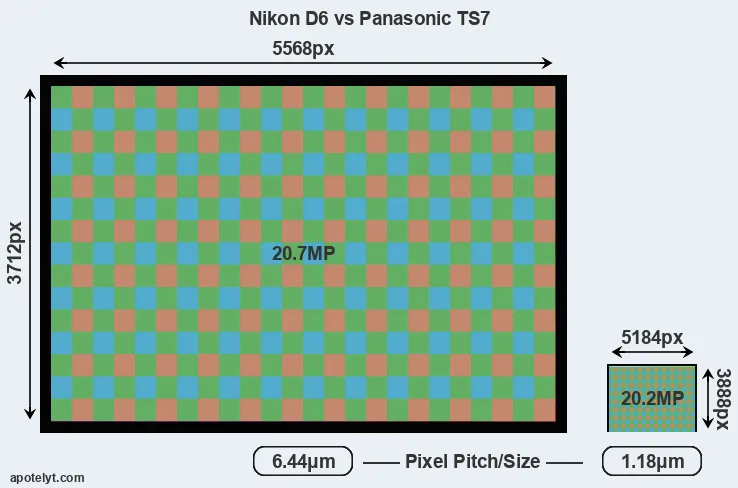 | Sensor Specs | Nikon D6 | Panasonic TS7 |