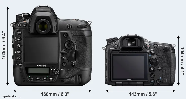 Going beyond this snapshot of core features and characteristics, what are the differences between the Nikon D6 and the Sony Alpha ALT-A99 II? Which one should you buy? Read on to find out how these two cameras compare with respect to their body size, their imaging sensors, their shooting features, their input-output connections, and their reception by expert reviewers.