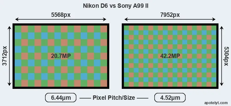 | Sensor Specs | Nikon D6 | Sony A99 II |