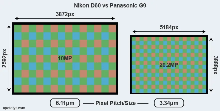 | Sensor Specs | Nikon D60 | Panasonic G9 |