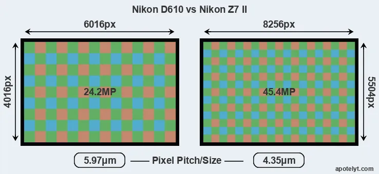 | Sensor Specs | Nikon D610 | Nikon Z7 II |