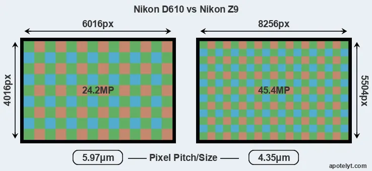 | Sensor Specs | Nikon D610 | Nikon Z9 |