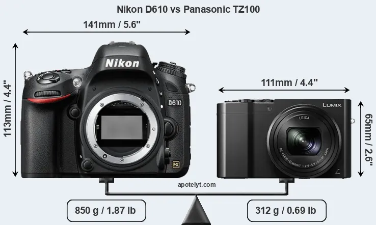 | Body Specs | Nikon D610 | Panasonic TZ100 |