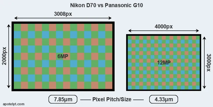 | Sensor Specs | Nikon D70 | Panasonic G10 |