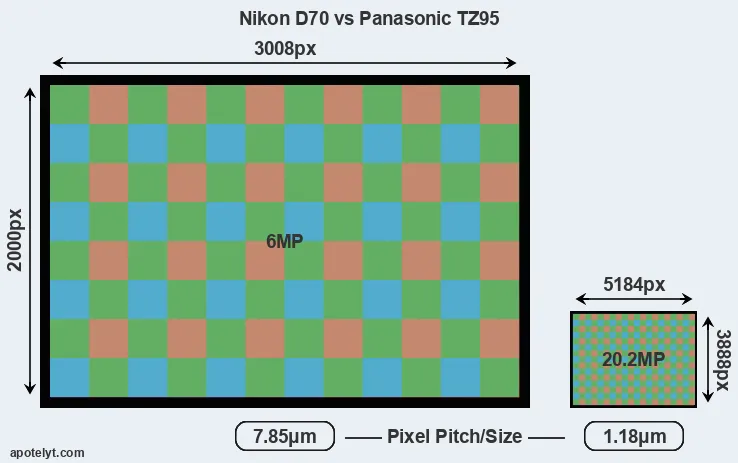 | Sensor Specs | Nikon D70 | Panasonic TZ95 |