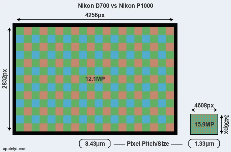 | Sensor Specs | Nikon D700 | Nikon P1000 |