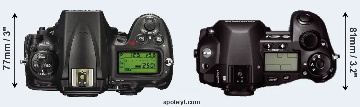 | 14. | Olympus E-3 | 142 mm | 116 mm | 75 mm | 876 g | 750 | Y | Oct 2007 | US$ 1 699 | ebay.com | |